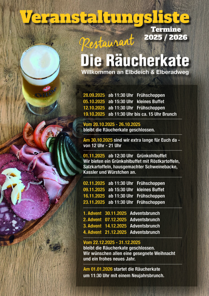 Mit viel Herz und Freude führen wir ❤️ Das Restaurant Die Räucherkate ❤️ nun unter neuer Leitung weiter. Wir laden Sie ein, in vertrauter, gemütlicher Atmosphäre unsere frischen Ideen und traditionellen Köstlichkeiten zu entdecken.